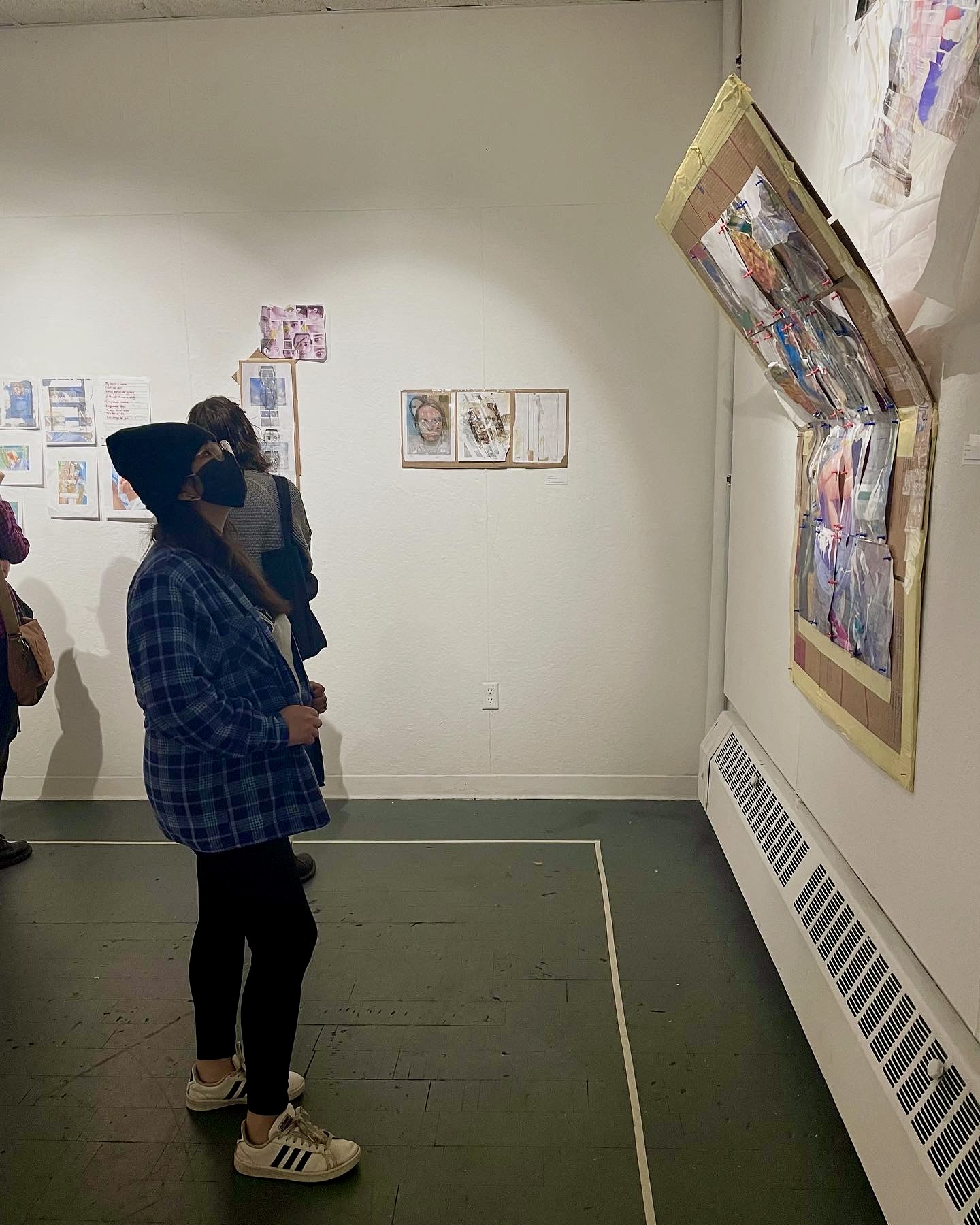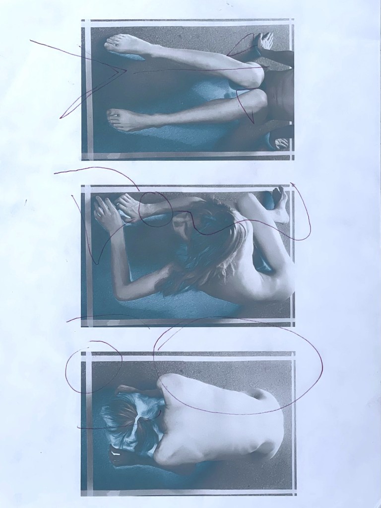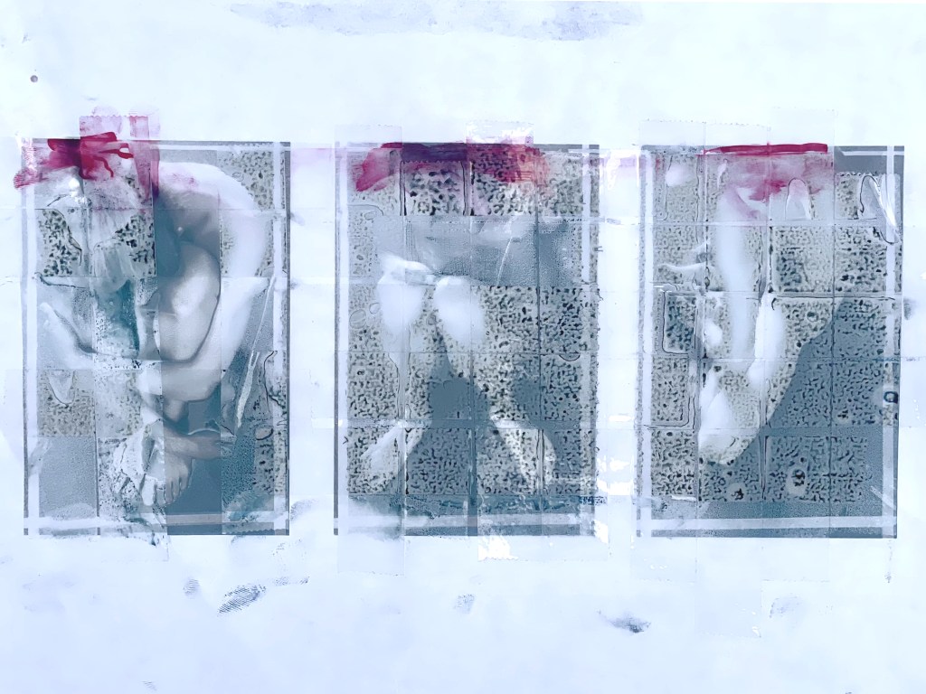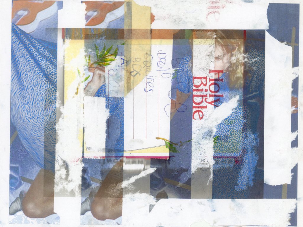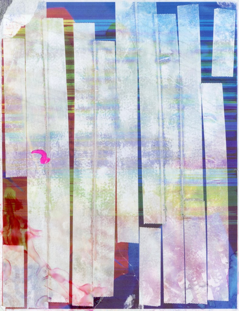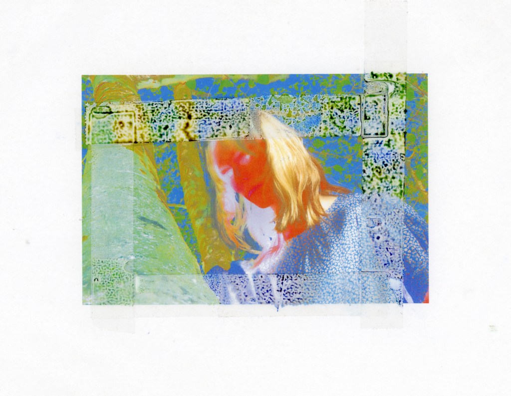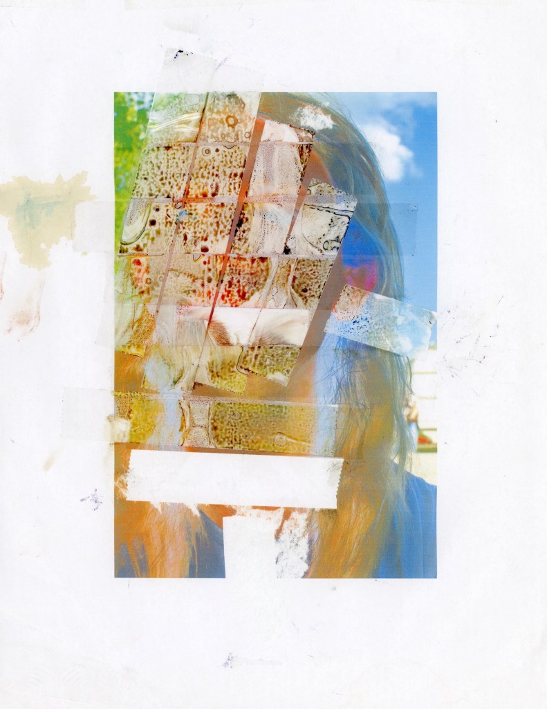 I ran my photos (mostly self-portraits) through a home printer whose cartridges I drained of ink. By adding tape to the paper before printer, I could prevent the ink from reaching the page. Then by adding more layers of tape, I found I could trap the ink in a liquid state. After more addition and subtraction, I arrived at this collection of pictures. Some of the work that was at the exhibition has been lost, but I believe the best of it is here. I also included some other work from around that time which in hindsight feels related.
